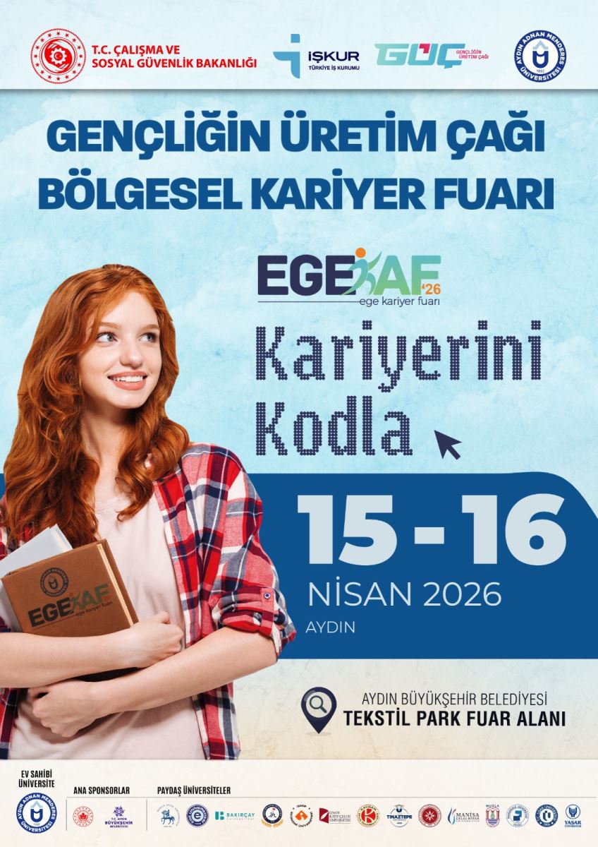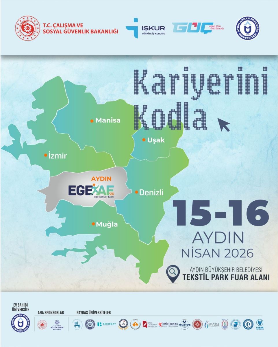 15-16 Nisan 2026 tarihlerinde beşincisi düzenlenecek olan Ege Bölgesi Kariyer Fuarı etkinliği Aydın Adnan Menderes Üniversitesinin ev sahipliğinde ve Üniversitemizin de katkılarıyla Aydın'da